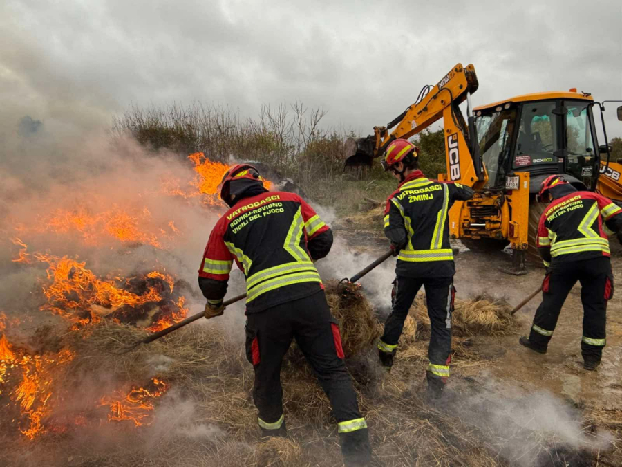 Požar je prijavljen u 14:12 sati, nakon čega su na teren odmah upućene ekipe Javne vatrogasne postrojbe Rovinj i Dobrovoljnog vatrogasnog društva Žminj.