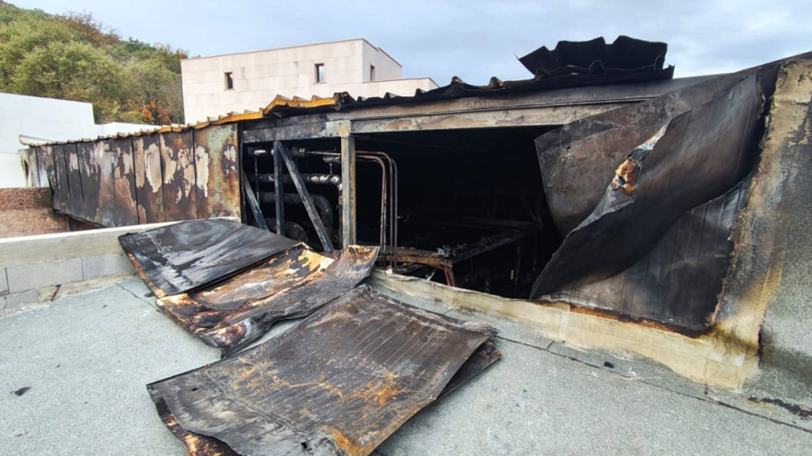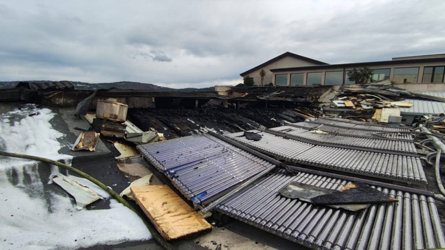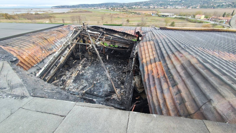 Fotografije s požarišta pokazuju potpuno izgoren krov aneksa, urušene dijelove konstrukcije i veliki broj nagorjelih instalacija.
