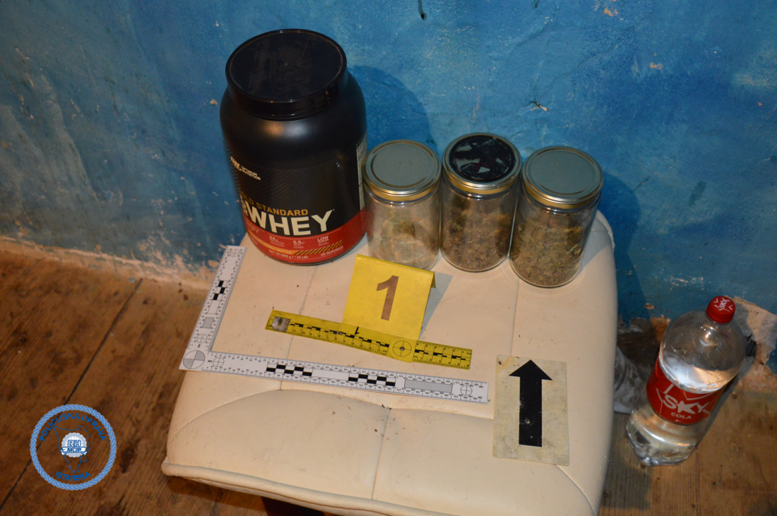 Policija je zaplijenila i više staklenih teglica s konopljom tipa droge ukupne bruto težine 1.680 grama, dva plastična spremnika s dodatnih 194 grama iste materije te 27 grama suhe konoplje.