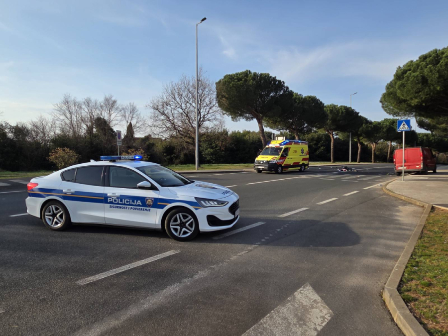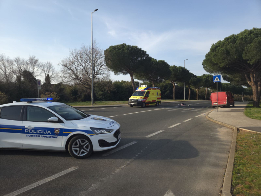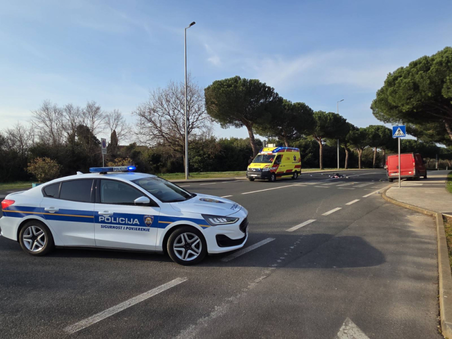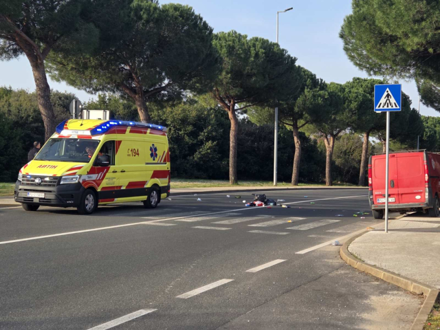 Prometna nesreća u Rovinju: Boce razbacane po pješačkom prijelazu, Hitna na terenu