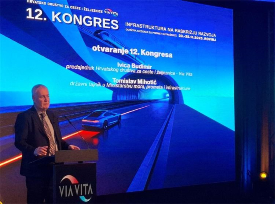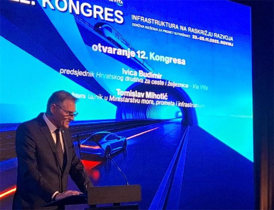 Državni tajnik Ministarstva mora, prometa i infrastrukture Tomislav Mihotić sudjelovao je na 12. kongresu Hrvatskog društva za ceste i željeznice „Via Vita“ koji se, pod nazivom "Infrastruktura na raskrižju razvoja", održao u ponedjeljak, 24. studenoga 2025. godine u Rovinju.