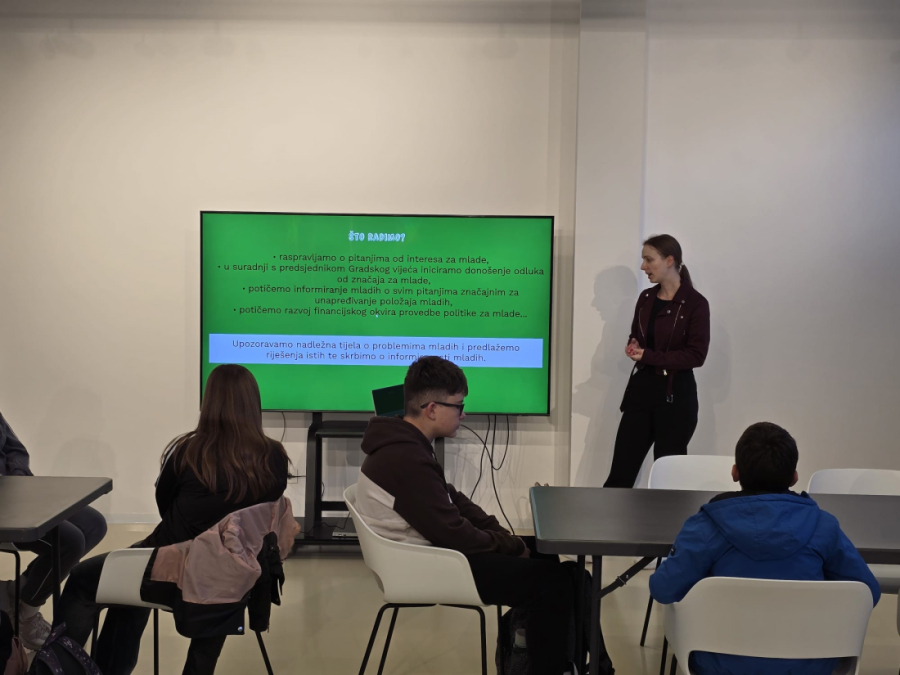 Tom su im prilikom predstavile aktivnosti i sadržaje Centra za mlade koji su im na raspolaganju u slobodno vrijeme, kao i misiju i ciljeve Savjeta mladih, kojem se mogu obratiti kako bi izrazili svoje potrebe i prijedloge za sadržaje kojima žele unaprijediti život mladih u gradu.