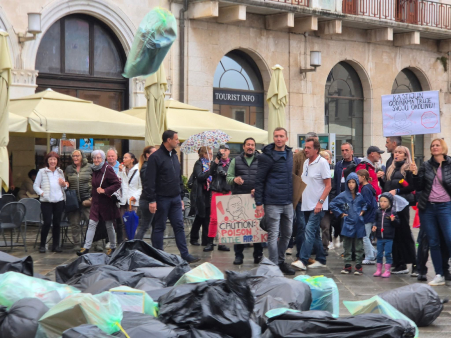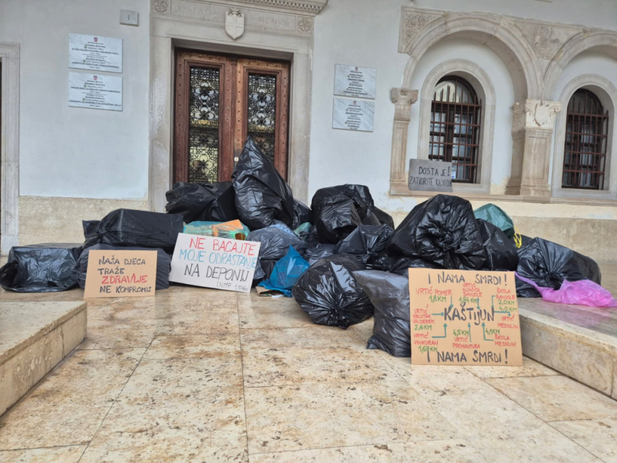 Građani su u znak prosvjeda zbog neugodnih mirisa s Kaštijuna bacili smeće pred ulaz Komunalne palače, dok se u isto vrijeme u njoj održava sjednica Gradskog vijeća.