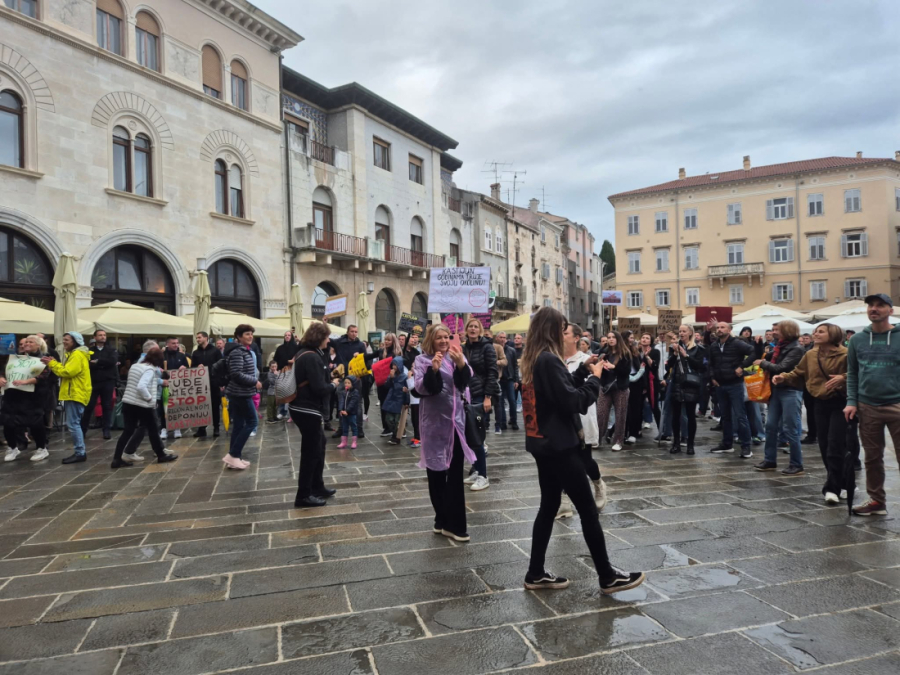 Prosvjedna povorka krenula je s Portarate, a završila na pulskom Forumu, ispred zgrade Komunalne palače, gdje se u isto vrijeme, od 17 sati, održava sjednica Gradskog vijeća.