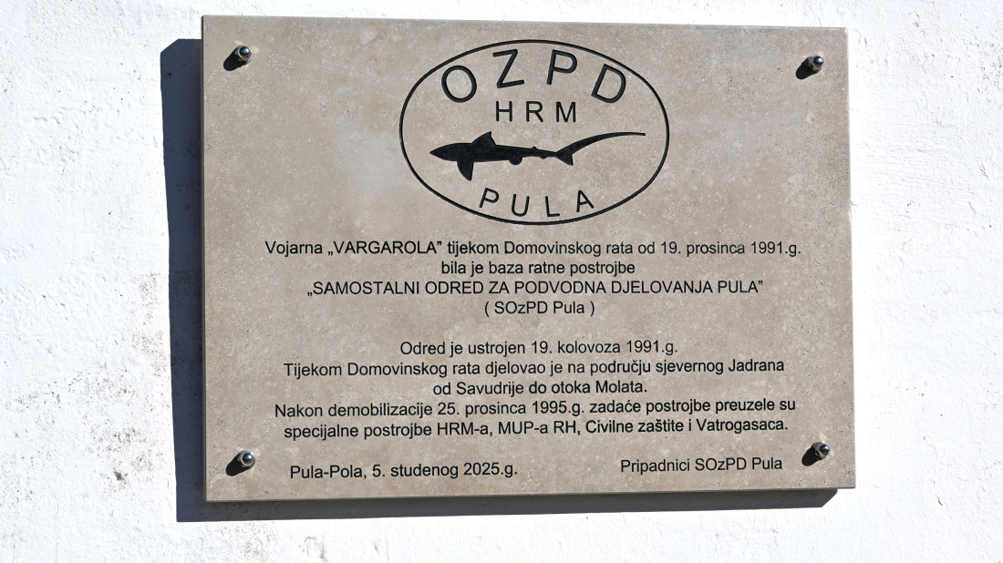 Istarski župan Boris Miletić sudjelovao je danas na svečanom otkrivanju spomen-ploče u vojarni Vargarola, u povodu 34. obljetnice uključivanja Samostalnog odreda za podvodna djelovanja Teritorijalne obrane Pula u sustav Hrvatske ratne mornarice, koji se u Domovinskom ratu iskazao hrabrošću, stručnošću i predanošću u brojnim zahtjevnim podvodnim zadaćama, dajući nemjerljiv doprinos obrani Republike Hrvatske.