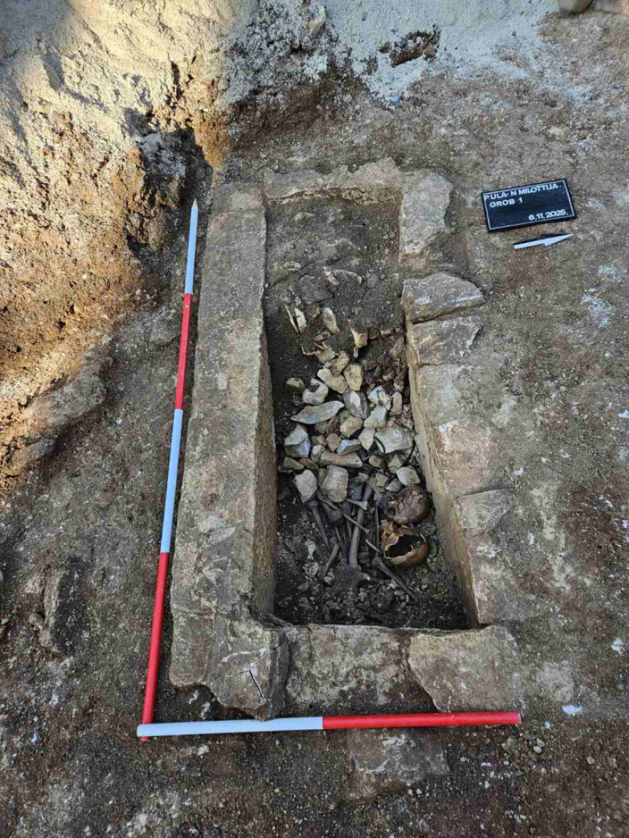 FOTO: Kod pulske Arene pronađene dvije lubanje i razbacane kosti u grobu iz 5. stoljeća!