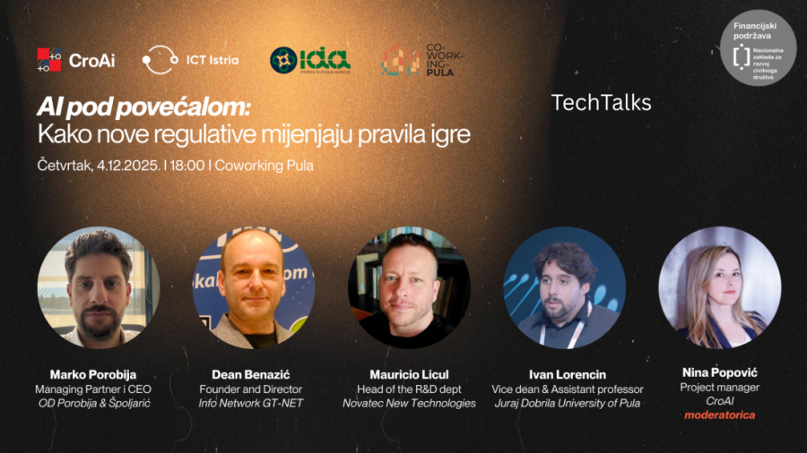 U četvrtak, 4. prosinca, u 18 sati, u konferencijskoj dvorani Coworkinga Pula održat će se peto izdanje TechTalks susreta s temom "AI pod povećalom: Kako nove regulative mijenjaju pravila igre".