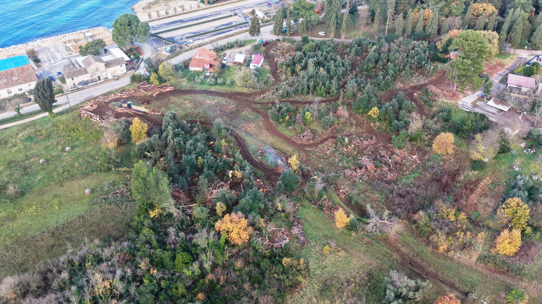Na području Laste u Rovinju u tijeku su opsežni radovi uklanjanja stabala, no kako potvrđuju Hrvatske šume, riječ je isključivo o sanaciji šteta nakon lipanjskog nevremena, a ne o pripremi terena za buduću gradnju.