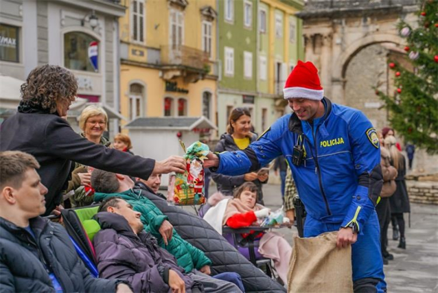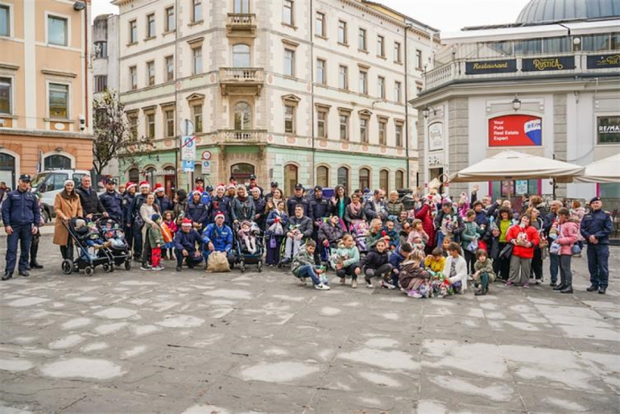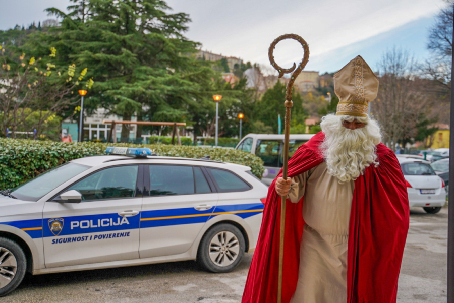 Policajce i Svetog Nikolu dočekali su mališani iz Dnevnog centra za rehabilitaciju Veruda Pula, Down syndrom centra Pula, štićenici Kuće milosrđa u Majmajoli te djeca o kojoj brine udruga ''Naš san njihov osmjeh'', a Svetom Nikoli poklone je pomogao podijeliti načelnik Policijske uprave istarske Alen Klabot sa suradnicima.