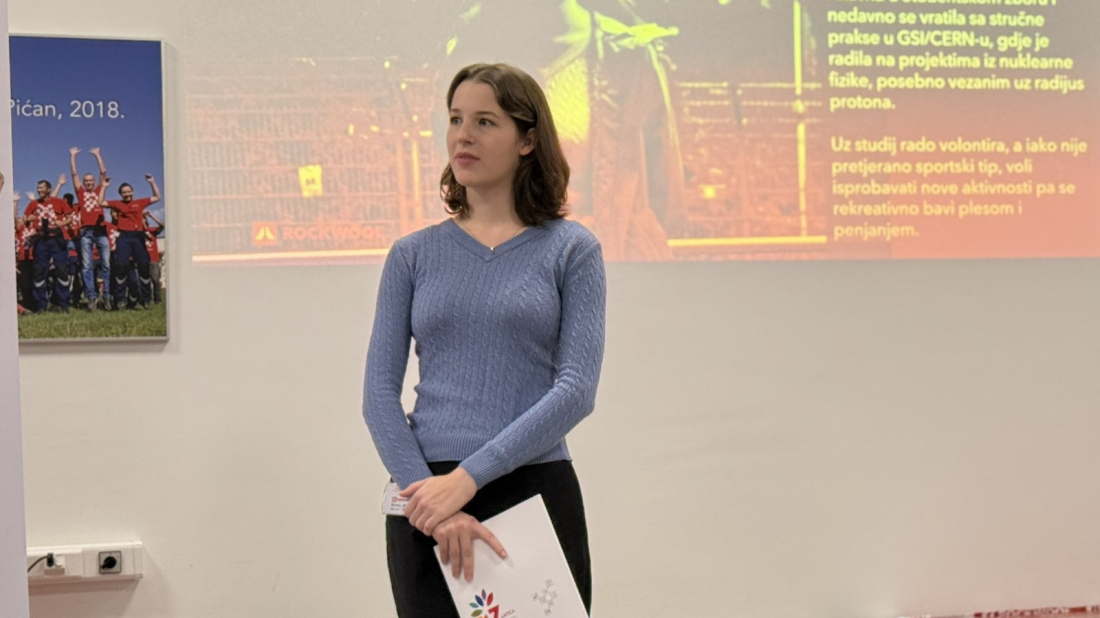 Matematika i fizika zanimaju ju od ranog djetinjstva – u njima nalazi logiku, mir i motivaciju za učenje. Aktivna u Studentskom zboru i nedavno se vratila sa stručne prakse u GSI/CERN-u, gdje je radila na projektima iz nuklearne fizike, posebno vezanim uz radijus protona.
