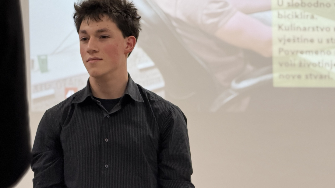 Nikola Karčić - Dolazi iz Bečića, 2. razred Srednje škole Mate Blažine Labin, smjer elektrotehničar. Odlikaš.