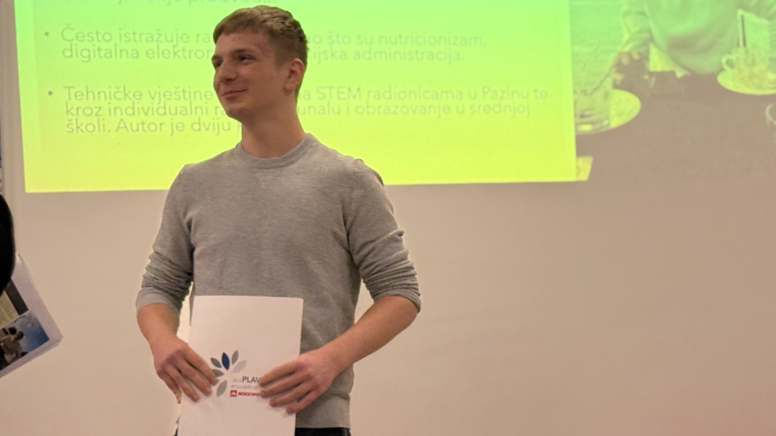 Domagoj Žiković - Pohađa 2. razreda srednje škole u Rovinju, smjer tehničar za računalstvo što je i planirao već od 7. razreda OŠ. Odluku je donio na 2. Festivalu strukovnih zanimanja u Pazinu da se bolje upozna s tim smjerom i čuje osobna iskustva učenika iste škole tog smjera. Živi u Općini Višnjan. Odličan i motiviran učenik s malo slobodnog vremena kojeg maksimalno koristi za učenje, trenira ili razvija nove vještine kao što su slaganje elektroničkih sklopova, mikro-kontrolera i računala, uređivanje video uradaka i fotografija te dizajniranje proizvoda.