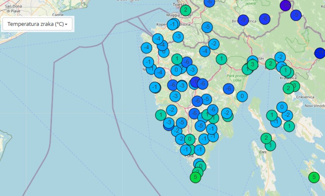 Niske temperature zabilježene su i u unutrašnjosti poluotoka – u Žminju i Pazinu izmjereno je -6 stupnjeva, dok je hladno bilo i uz obalu. U Rovinju je jutarnja temperatura iznosila -5 stupnjeva, u Pulai -3, koliko je izmjereno i u Taru.