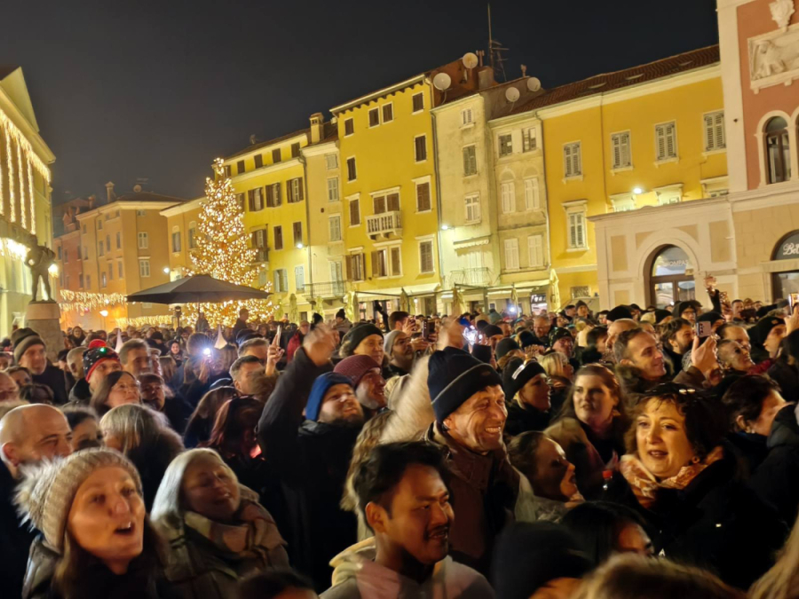 Ispunjeni glavni gradski trg u Rovinju bio je sinoć središte velike novogodišnje fešte na kojoj su Rovinjci i brojni gosti uz glazbu, pjesmu i odbrojavanje zajedno zakoračili u 2026. godinu.