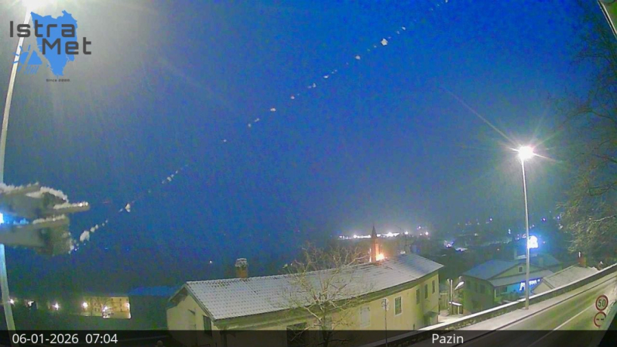 Zabijelilo se gotovo svugdje, od Pule do Buja. Za danas je prognoza Istrameta oblačno vrijeme s povremenim snijegom, uglavnom u unutrašnjosti Istre i zaleđu Rijeke iznad 200 metara nadmorske visine.