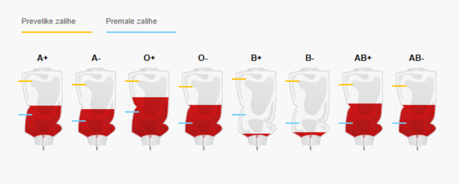 Opskrba bolnica cijele regije je zadovoljavajuća, ali zbog povećane potrošnje, a smanjenog broja darivatelja krvi tijekom blagdana trenutno postoji povećana potreba za krvi, posebno krvnih grupa A pozitivan, B pozitivan i B negativan.