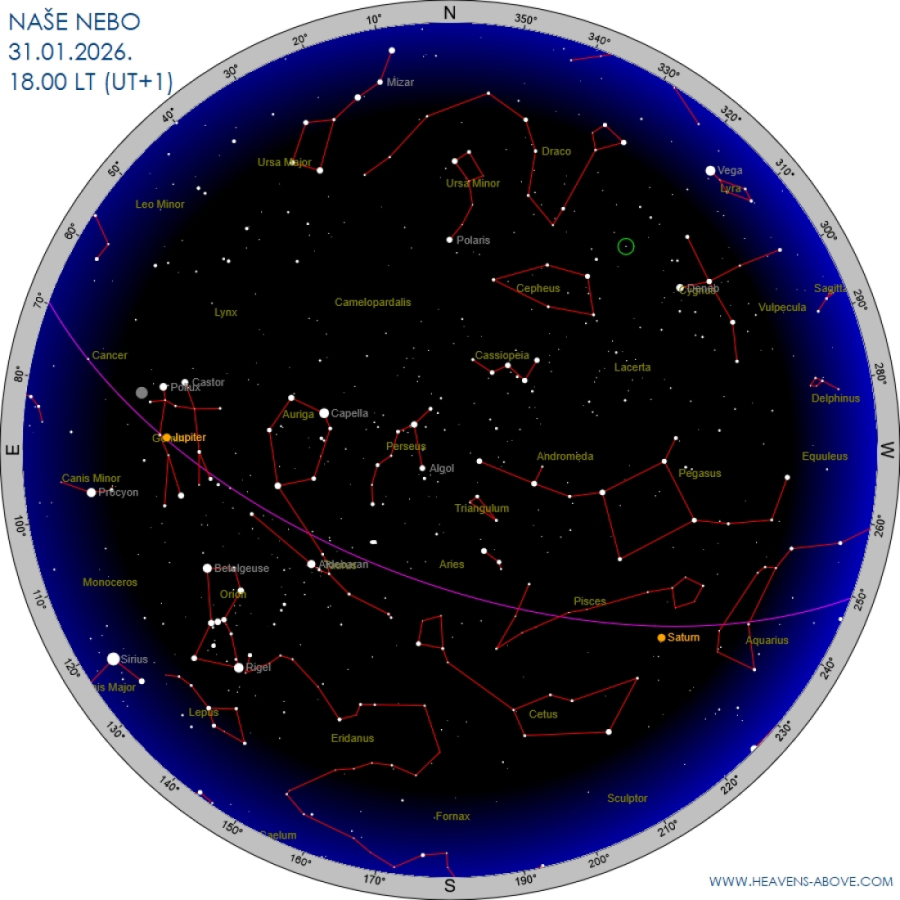 Saturn nam se ukazuje u večernjim satima, sjaji poput zvijezde i ostaje s nama do nešto prije 21 sat, kada i on zalazi za horizont.