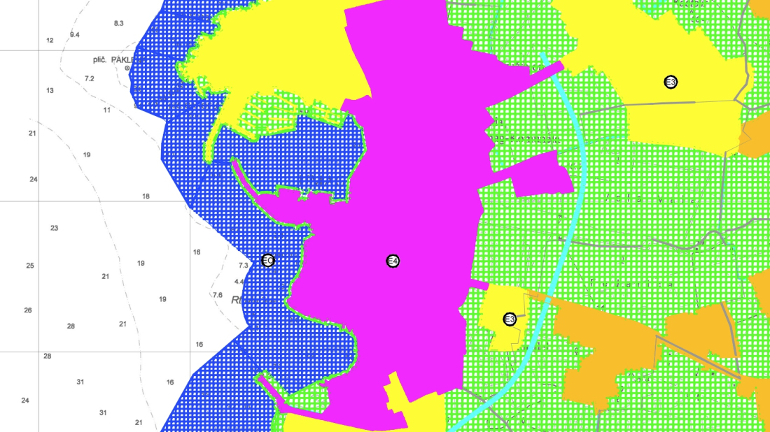 U predloženom planu, međutim, gotovo cjelokupno područje centra grada, pa čak i pojedine zone koje po svojoj funkciji i karakteru ne mogu biti područja visoke ambijentalne rasvijetljenosti, svrstano je u zonu E4. Posebno je problematično što je u tu kategoriju uključeno i gradsko groblje, što predstavlja primjer nepravilnog i neprimjerenog razvrstavanja zona rasvjete.