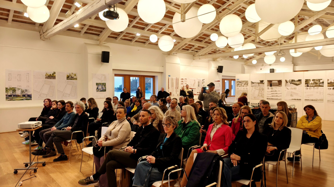 Večer je bila posvećena ne samo predstavljanju pristiglih radova, nego i širem razgovoru o važnosti promišljanja prostora, kvaliteti javne arhitekture i odgovornom planiranju prostora od posebne osjetljivosti i važnosti za zajednicu.