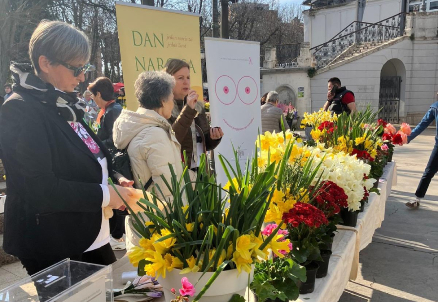 Brojni građani zaustavljali su se kod štanda, uzimali narcise i simboličnim donacijama pružali podršku ženama koje se suočavaju s ovom bolešću.