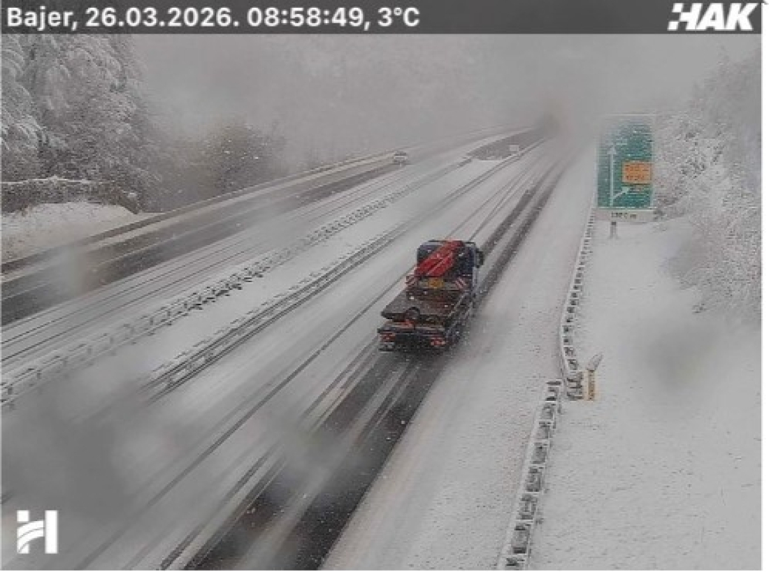 Na terenu su ekipe zimske službe koje kontinuirano čiste i posipavaju kolnik, no promet se odvija otežano i uz povremena usporavanja upravo zbog njihove intervencije.