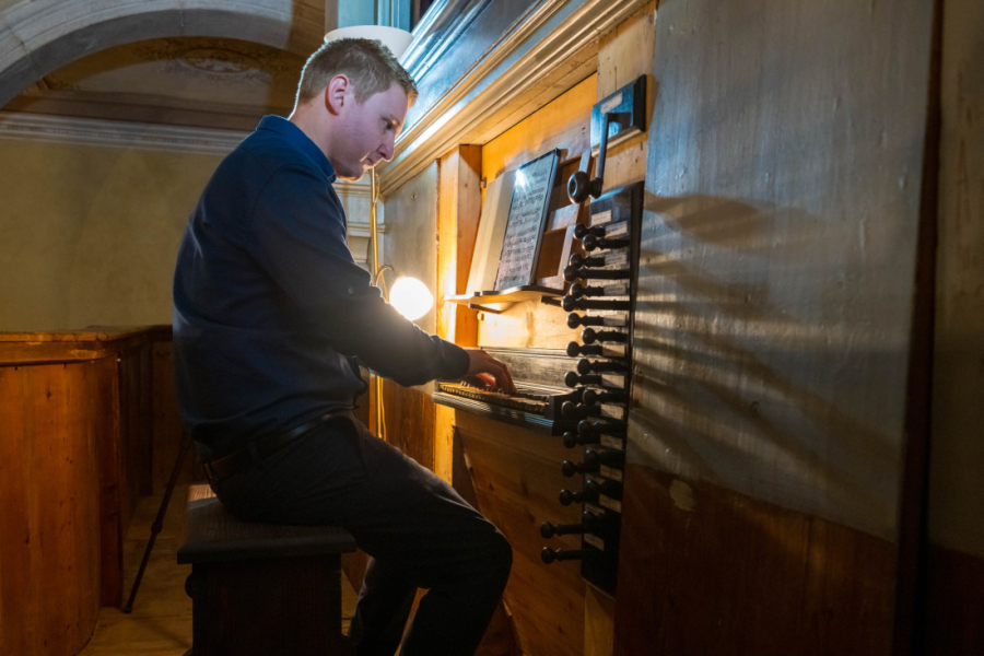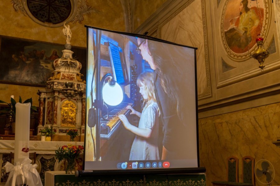 Ovaj instrument se nakon uspješne restauracije po rukama majstora orguljara Francesca Zanina prošle godine napokon vratio “kući” – na svoju izvornu lokaciju predivnog kora Osvalda Piazze crkve sv. Stjepana. U predivnoj akustici crkve posjetitelji su pažljivo slušali interpretacije senzibilnog orguljaša, ali i upijali zvukove baroknih orgulja koji su ispunjavali baroknim ornamentima ukrašene zidove crkve.