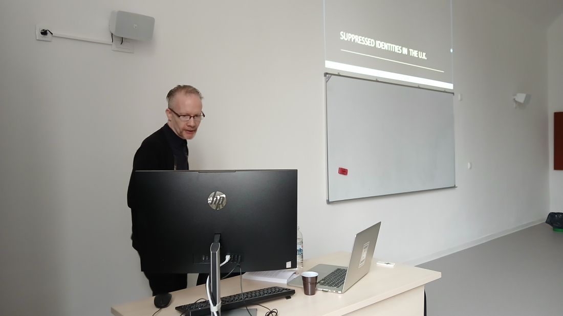 Njegovo je predavanje bilo naslovljeno "Potisnuti identiteti u UK-u / Suppressed Identities in the UK", a održano je u sklopu kolegija Britanska kultura i civilizacija, čija je nositeljica doc. dr. sc. Katja Dobrić Basaneže.