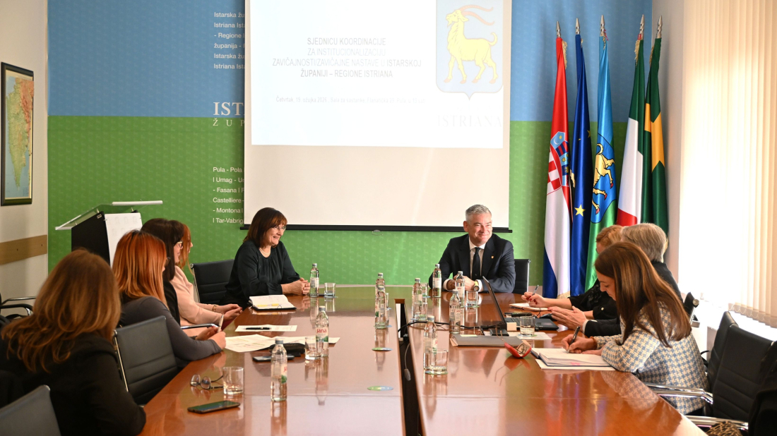 Danas je u sjedištu Istarske županije u Puli održana sjednica Povjerenstva za Zavičajnu nastavu kojoj su prisustvovali župan Boris Miletić, njegove zamjenice župana Gordana Antić i Jessica Acquavita te pročelnik Upravnog odjela za kulturu i zavičajnost Vladimir Torbica.