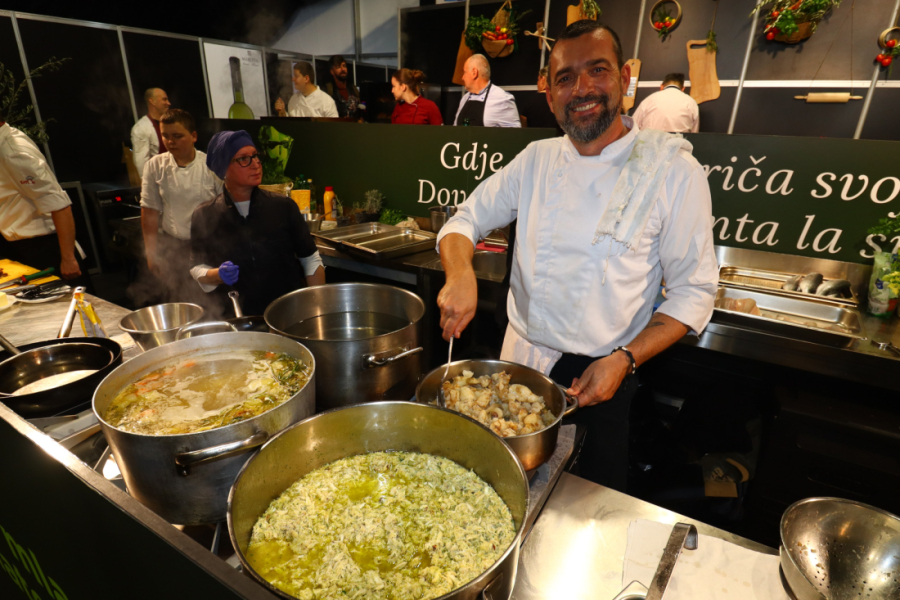 Gospodar kuhinje prvog dana sajma bio je chef David Skoko. Ribarev sin kulinarsku je inspiraciju pronašao u invazivnoj vrsti. "Napravili smo njoke sa šugom od plavog raka, a gore smo tostirali malo mendula. Pijat je stvarno bio dobar, podijelili smo više od 200 porcija. Nakon toga pripremali smo filet brancina s pireom od čičoke i tikvica. Jako fino", kazao je David Skoko.