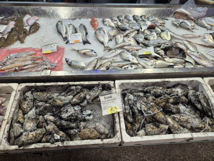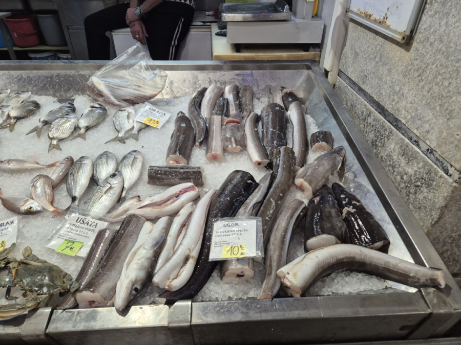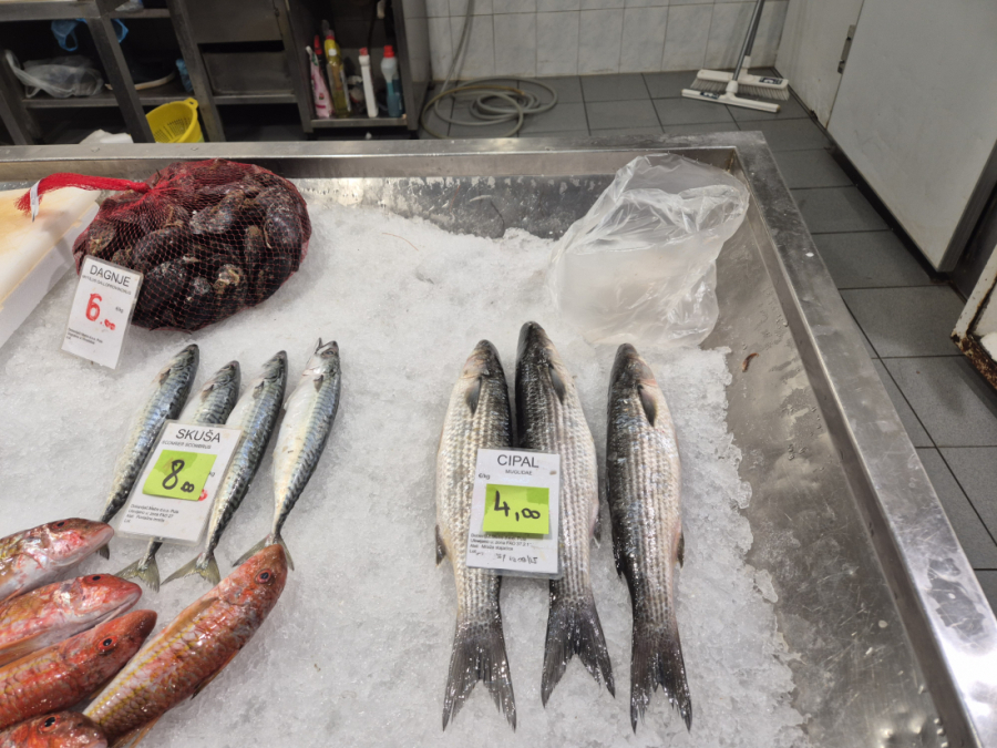 Kako nam je rekla Alma Bačinović, vlasnica jedne od ribarnica, ponuda je raznolika i temelji se isključivo na domaćem ulovu. Na štandovima se mogu pronaći švojat, list, oslić, orada, brancin, sipa, riba ulovljena u Jadranskom moru. No, unatoč kvaliteti i svježini, interes kupaca trenutačno je skroman.