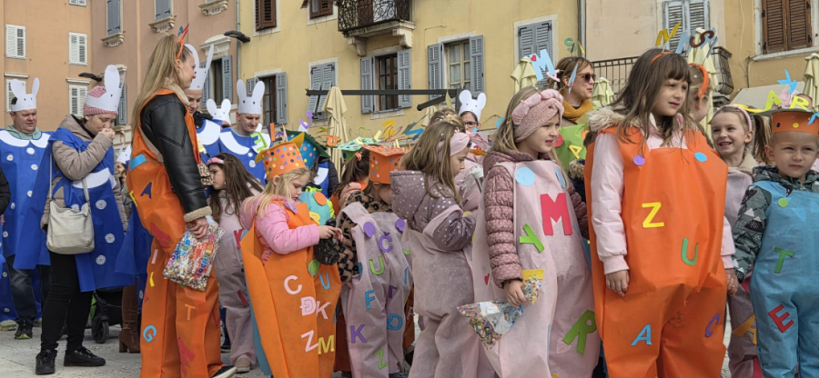 Sunčano vrijeme dodatno je podiglo raspoloženje, a gradski trg bio je ispunjen roditeljima, nonama i nonićima, članovima obitelji i prijateljima koji su došli podržati male i velike maškare.
