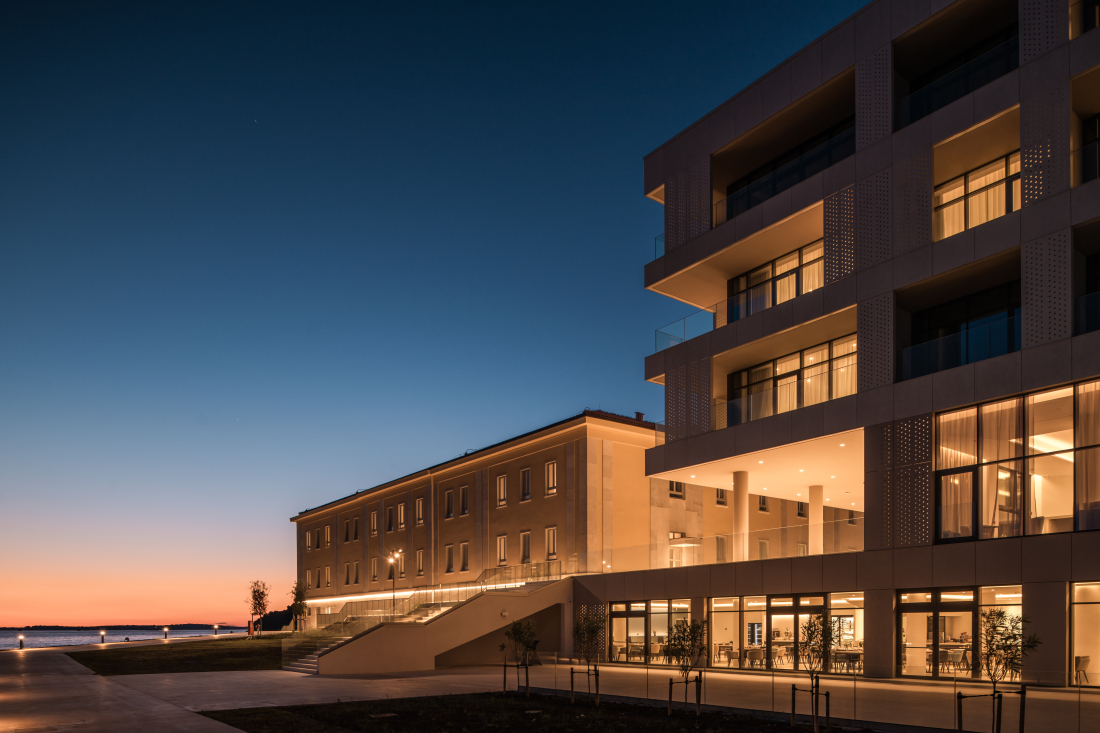 Obnova povijesne zgrade provedena je u skladu s konzervatorskim smjernicama, a nova hotelska zgrada integrirana je u ambijent, stvarajući spoj povijesti i suvremenog luksuza koji danas predstavlja jedan od najupečatljivijih hotelskih prostora na Jadranu.
