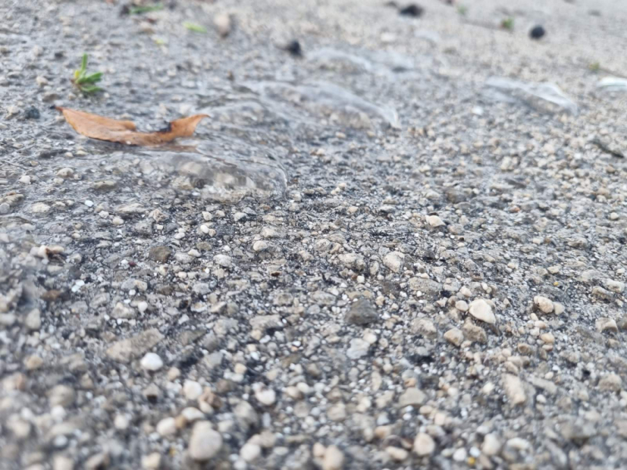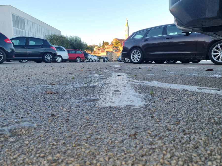 Također, na istoj toj lokaciji, jači naleti vjetra uzrokuju izbacivanje mora na kopno do čega je noćas očito došlo jer je cijeli parking Valdibora prekriven rebrašima.