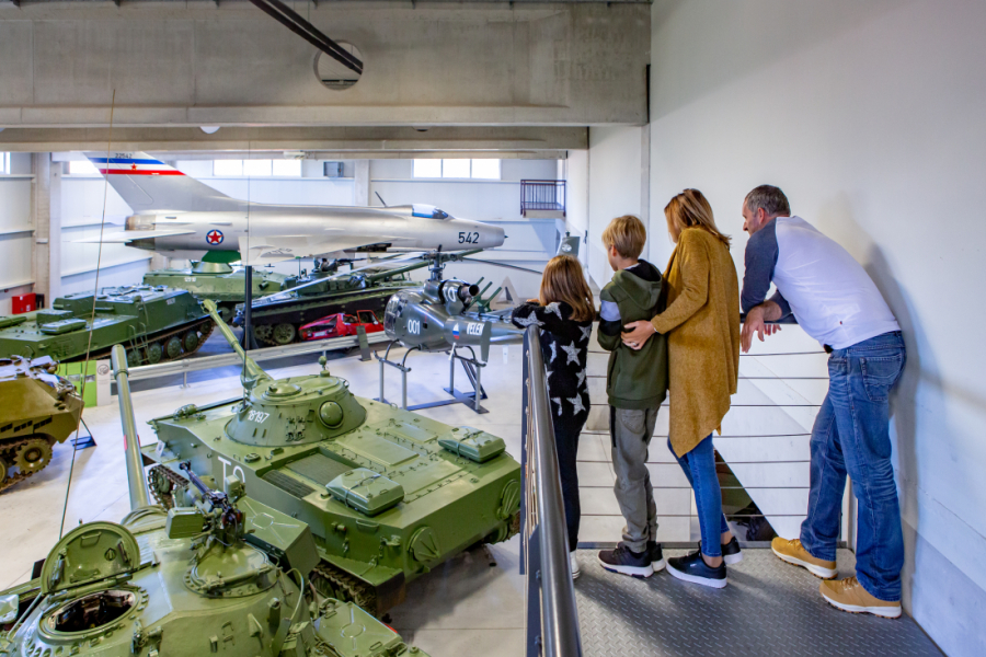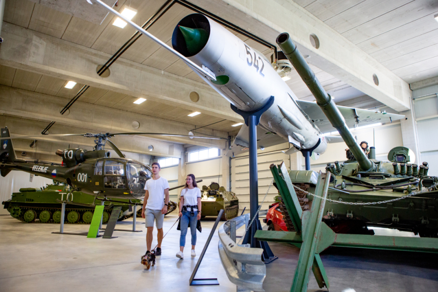 Zgrade koje čuvaju važne i vrijedne uspomene izmjenjuju se s eksponatima na otvorenom. Tu su biste i spomenici velikana i događanja sačuvani od propadanja. Tenkovi, topovi, transporteri, helikopteri, avioni s oznakama i brojevima kakve su imali u njihovo vrijeme. Helikopter i tenk s jugoslovenskim i slovenskim zastavama stoje jedan uz drugog.