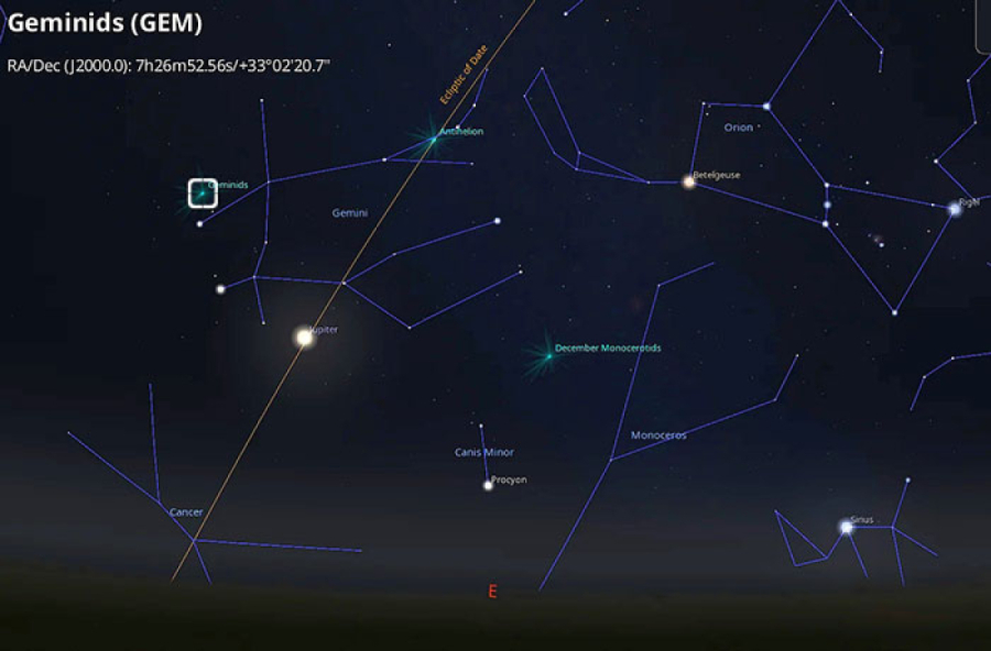 Maksimum aktivnosti očekuje nas u noći s subote na nedjelju (13./14. XII), noć prije i noć poslje također su atraktivne za opažače golim okom. Najbolje vrijeme za promatranje meteora je od 22h navečer pa sve do pred jutro.