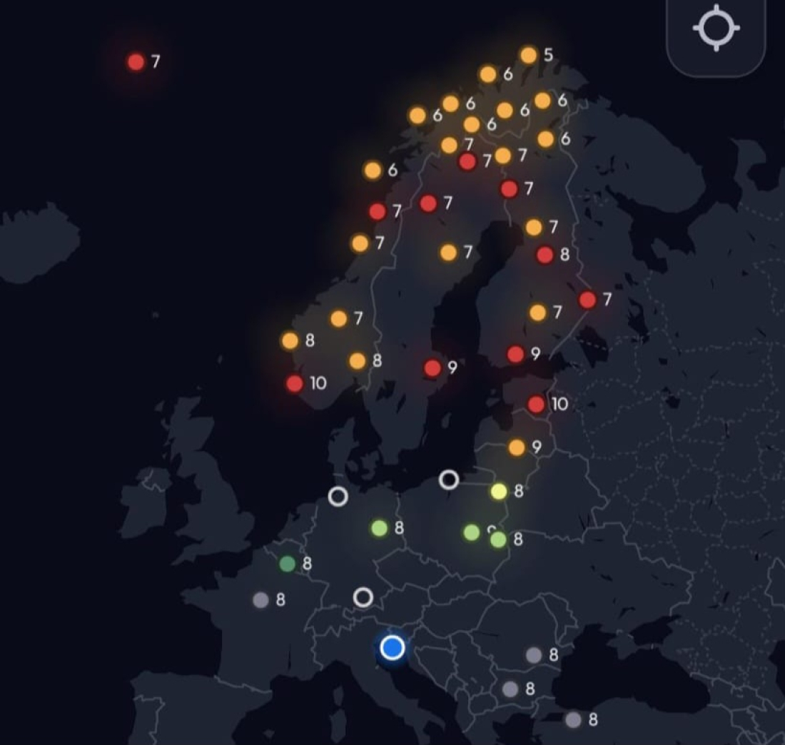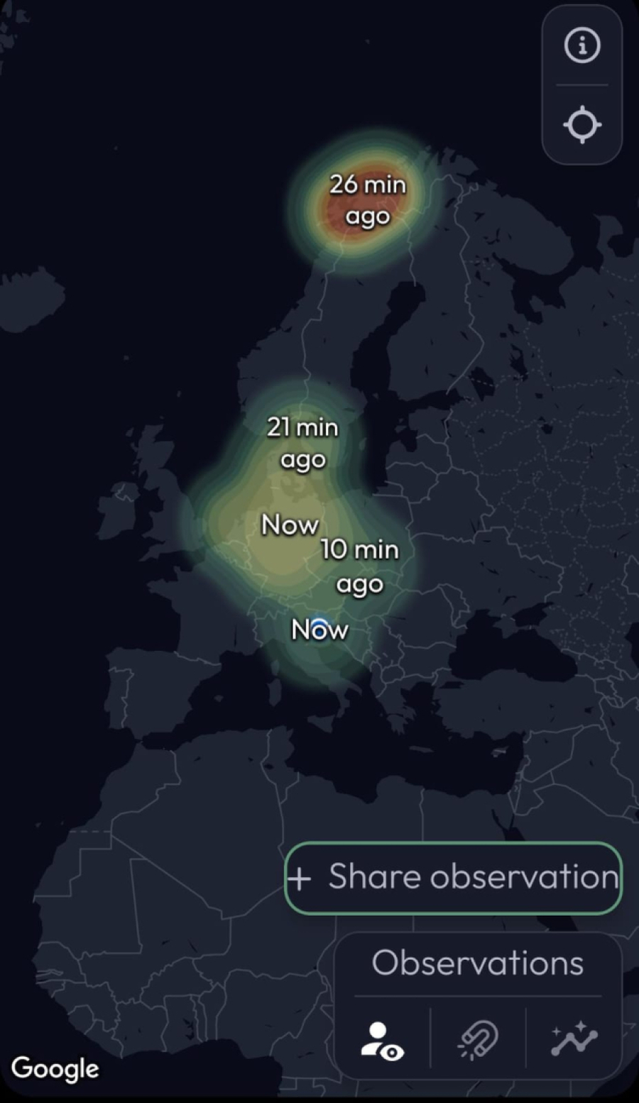 Objavljeni su i aktualni grafikoni elektromagnetske aktivnosti te karte rasprostranjenosti vidljivosti diljem Europe.