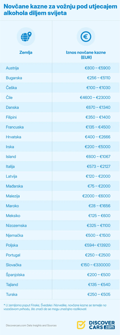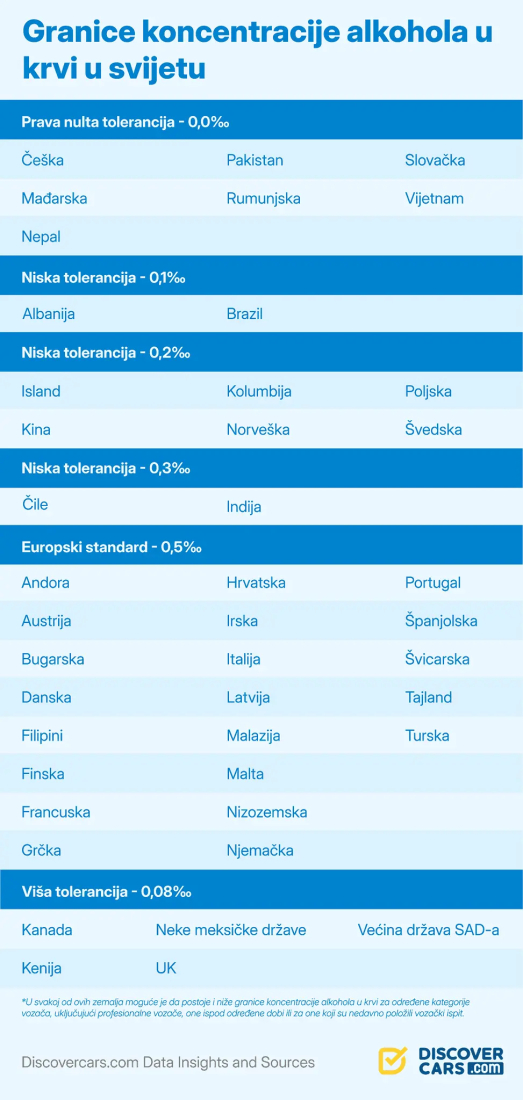 Iz tog je razloga globalna stranica za usporedbu cijena najma automobila DiscoverCars.com stvorila vodič sa zakonskim ograničenjima za vožnju pod utjecajem alkohola diljem svijeta, sa svim informacijama koje trebate znati za pojedinu zemlju.