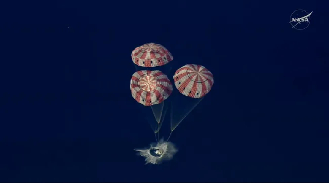Na sreću, sve je proteklo prema planu te je Orion s posadom u 02:07, uz otvorene padobrane, meko sletio u Tihi ocean.