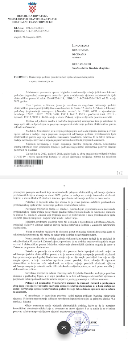 „Ja provodim i poštujem Poslovnik. Ministarstvo je 24. listopada 2025. dalo uputu da se sjednice ne mogu održavati u virtualnom obliku.
