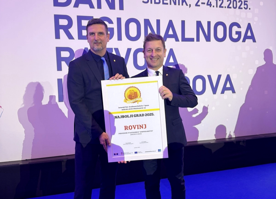 Grad Rovinj proglašen je najboljim gradom u Hrvatskoj u kategoriji gospodarstva u konkurenciji srednjih gradova u ovogodišnjem izboru za Najbolji grad.