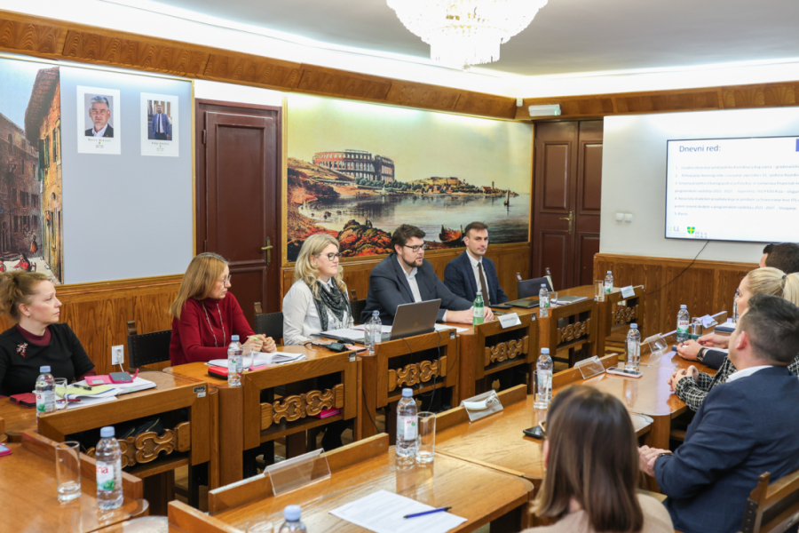 Prisutne je uvodno pozdravio gradonačelnik Peđa Grbin naglasivši važnost sjednice na kojoj je predviđeno usvajanje nove liste strateških projekata po Sporazumu o provedbi ITU mehanizma Urbanog područja Pula u okviru Integriranog teritorijalnog programa, za financijsko razdoblje 2021.-2027. ukupne vrijednosti 33 milijuna eura.