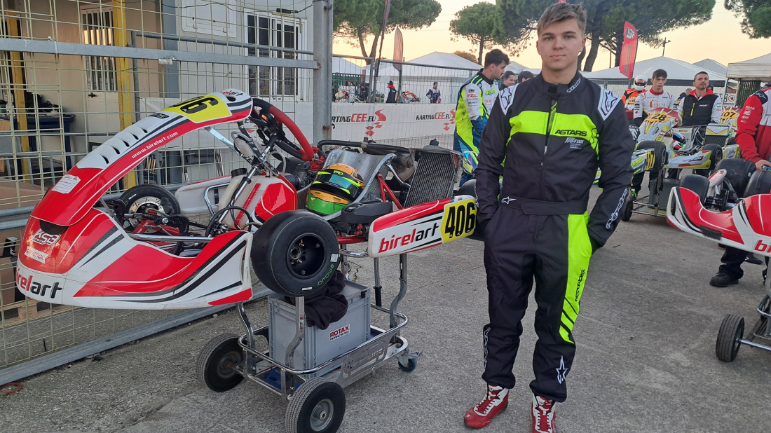 Ni prva utrka nije prošla bez problema – nakon što se probio do 14. pozicije, novi kontakt s drugim vozačem ponovno mu je oštetio karting, te je utrku završio na 18. mjestu.